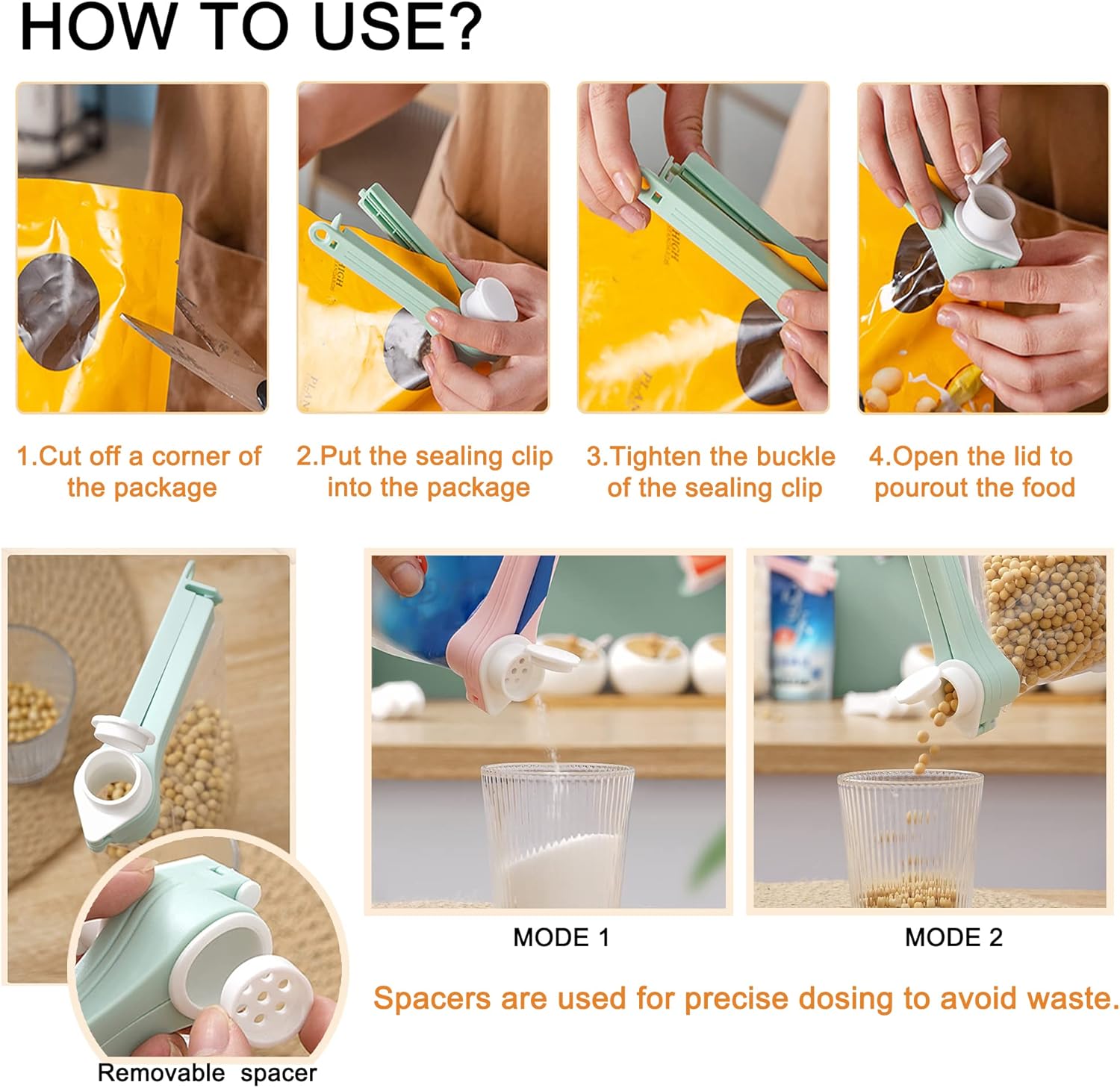 🫙 Easy Pour Spout: Each clip features a built-in spout for quick and mess-free pouring.